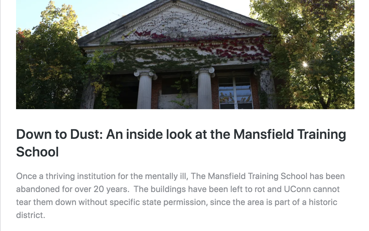 Below are the most recent encounters from countless online resources on Mansfield Training School and news regarding the future of the UConn Depot Campus that we’ve found throughout our time learning and engaging with the institution…